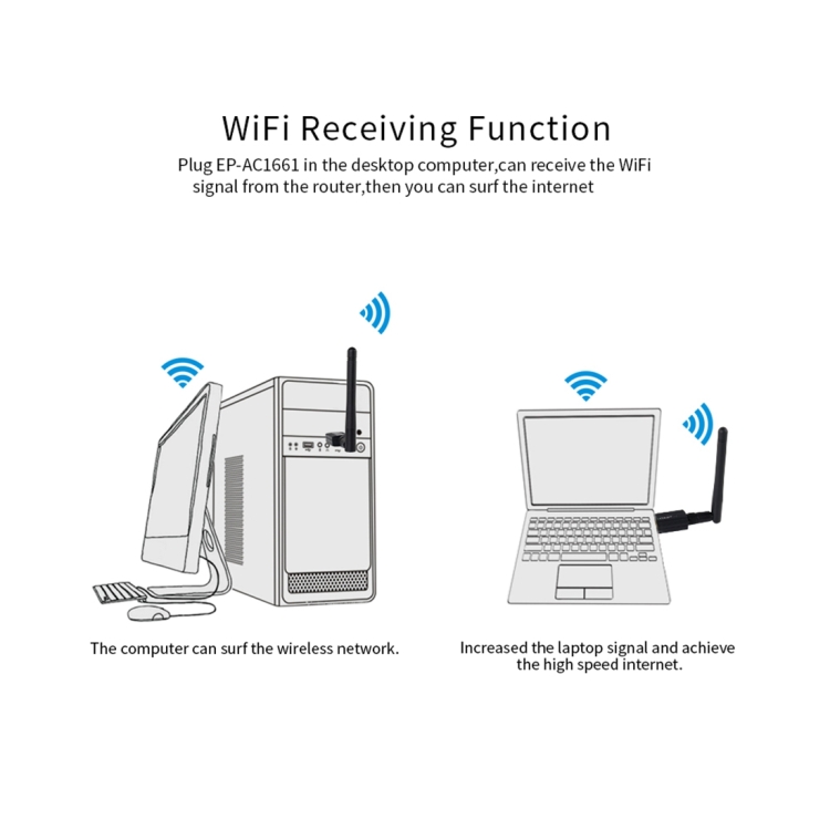 1. 2.4GHz & 5GHz dual band : this wireless network card adopts dual band of 2.4GHz and 5GHz to make it suitable for different situations.
