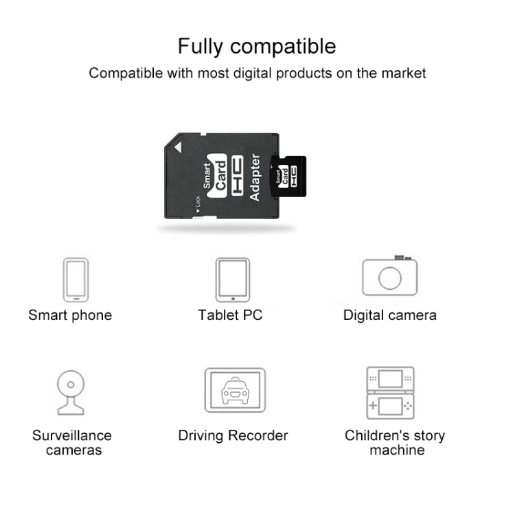 4. Compatible with most digital products on the market, easy to convert to SD card with SD card sets, compatible with SD ordinary card machine and SLR and other digital devices.