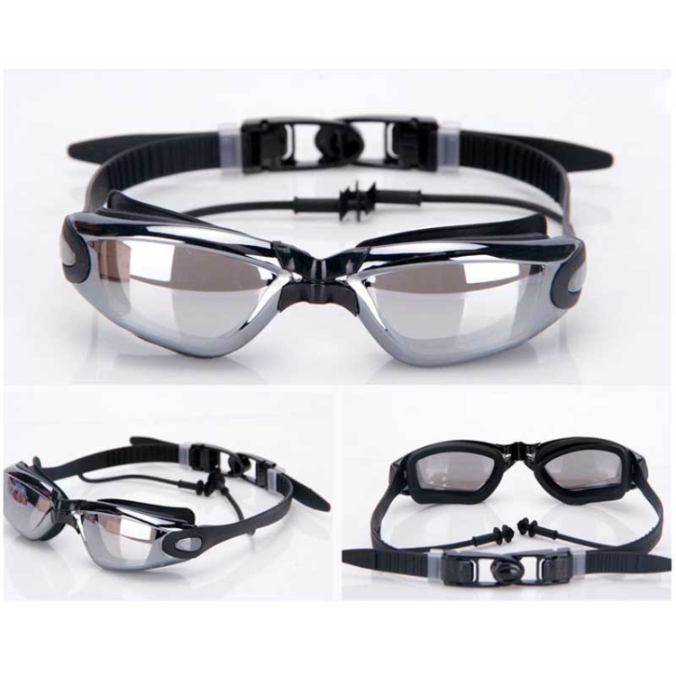 Electroplating Anti-fog Silicone Swimming Goggles with One-piece Ear Plugs for Adults