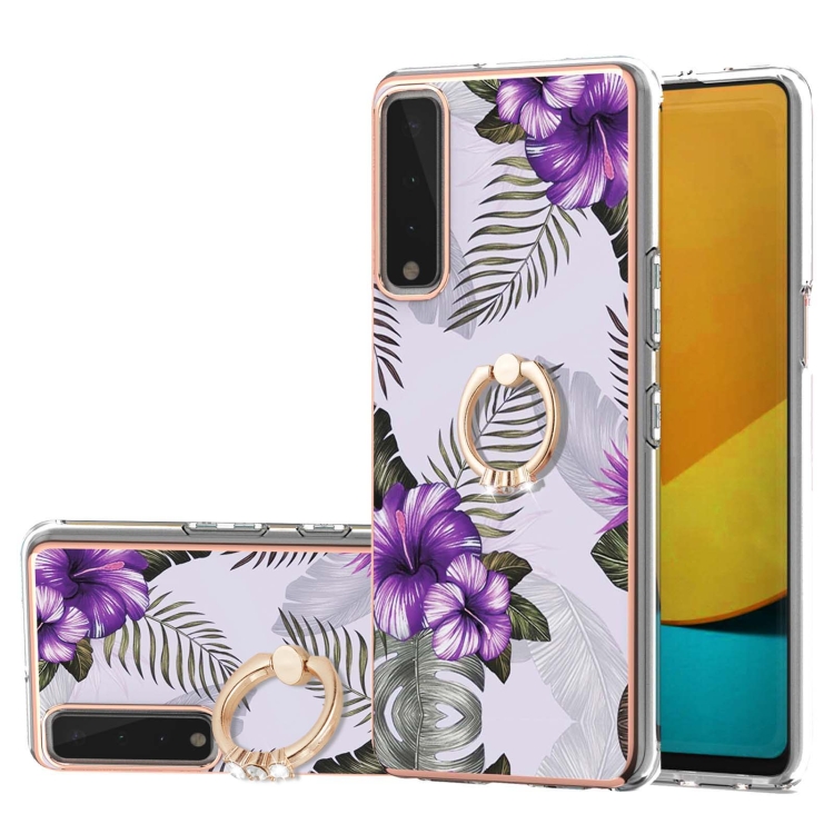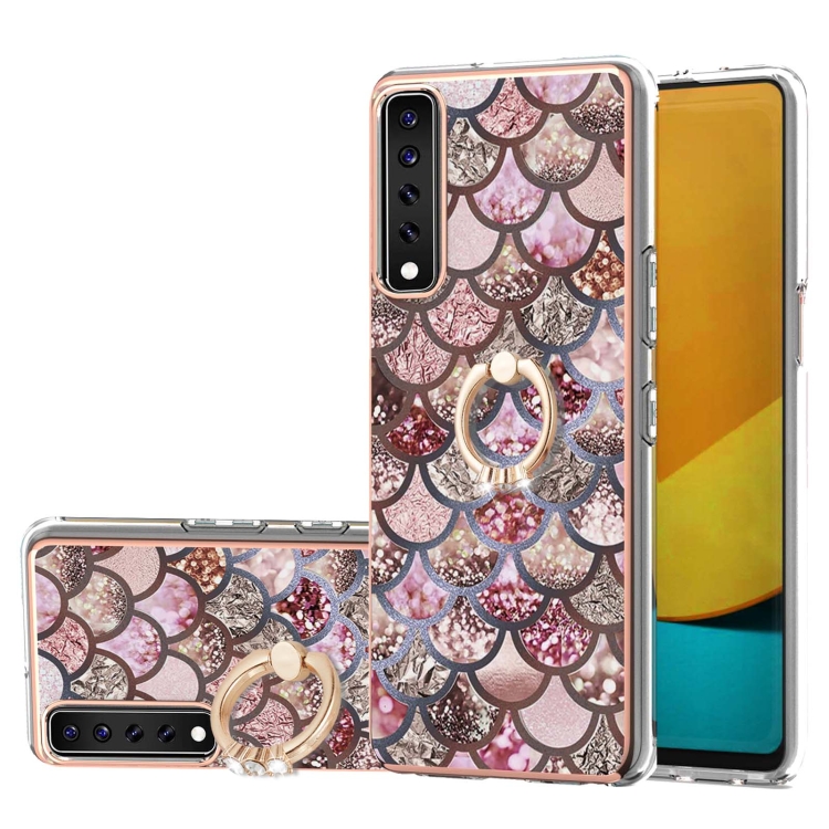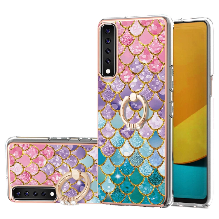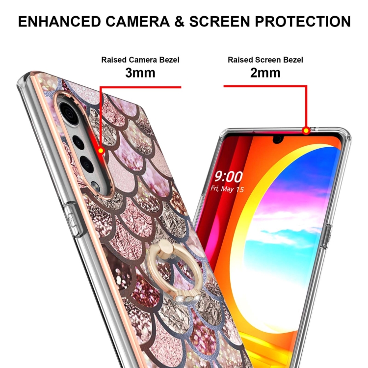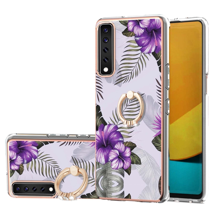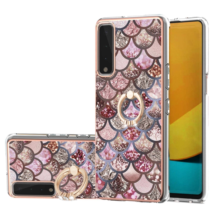 Electroplating Pattern IMD TPU Shockproof Case with Rhinestone Ring Holder