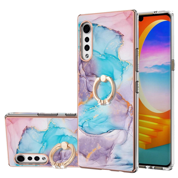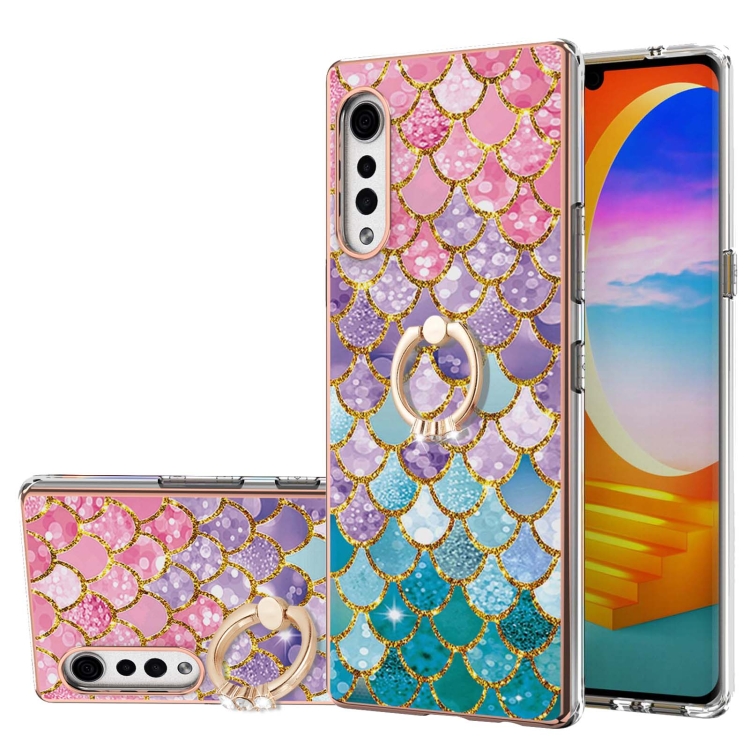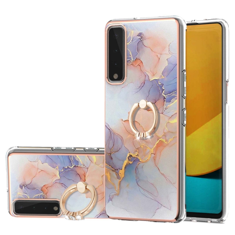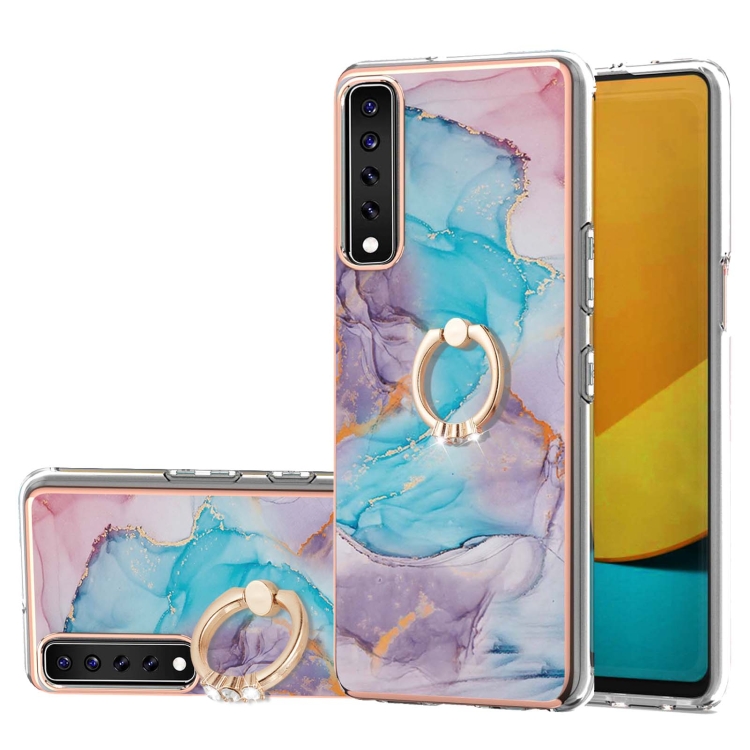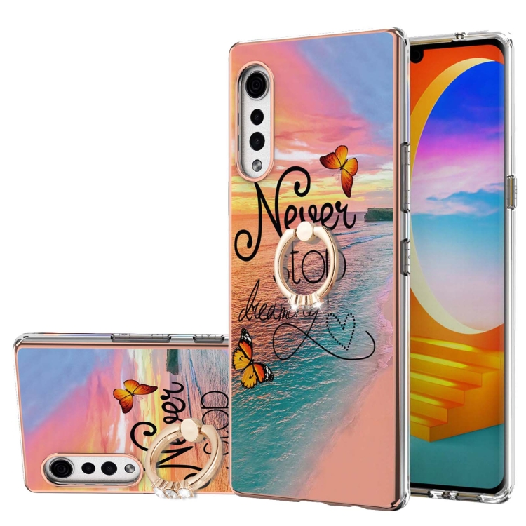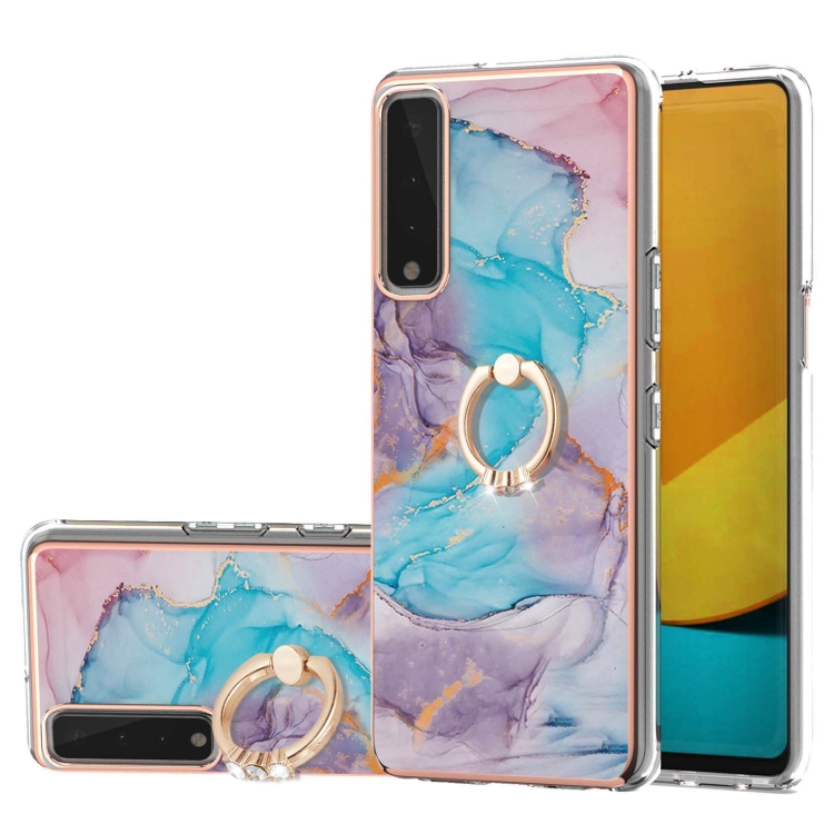 Electroplating Pattern IMD TPU Shockproof Case with Rhinestone Ring Holder