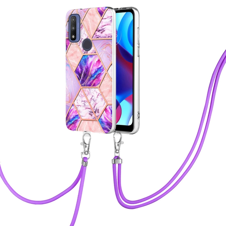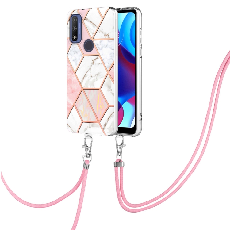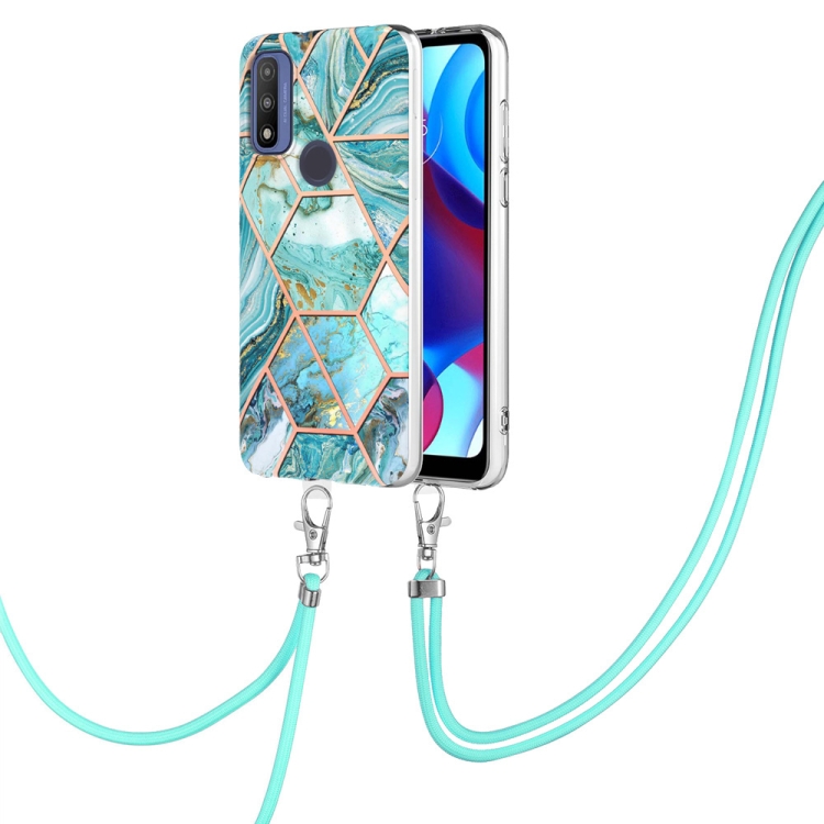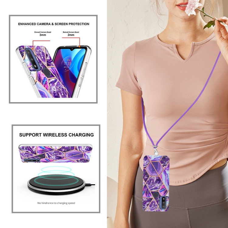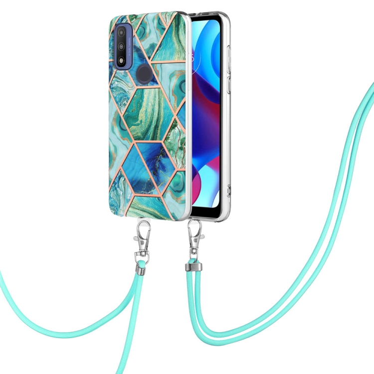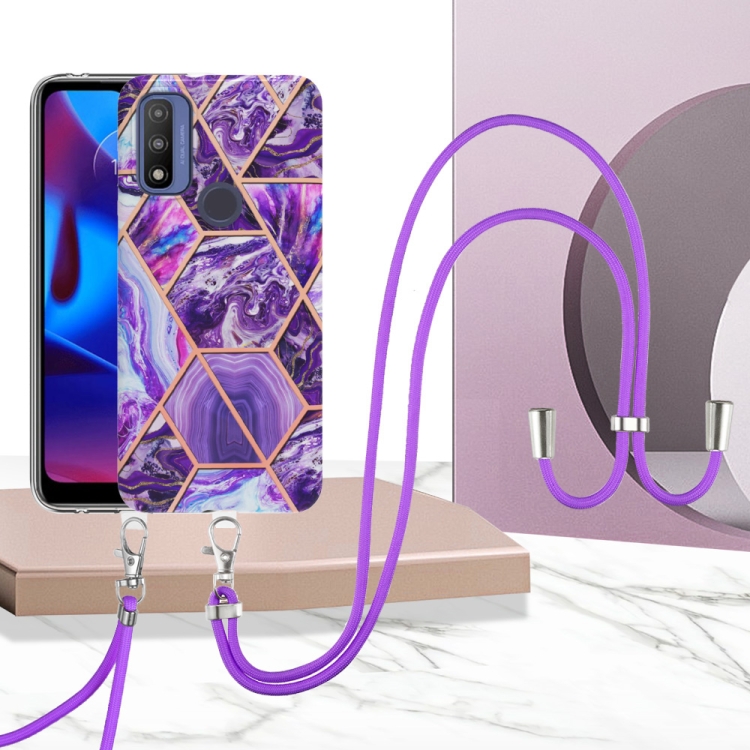 Electroplating Splicing Marble TPU Phone Case with Lanyard