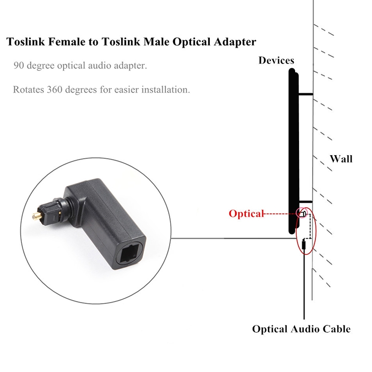 EMK 360 Degree Male to Female Conversion Head Optical Fiber Adapter Audio Adapter