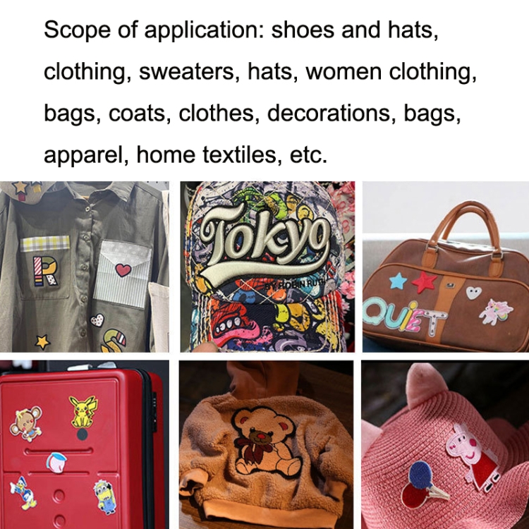 5. Scope of application: shoes and hats, clothing, sweaters, hats, women’s clothing, bags, coats, clothes, decorations, bags, apparel, home textiles, etc.