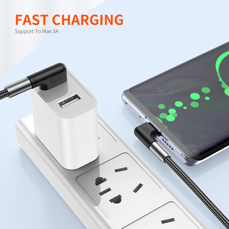 ENKAY 3A Elbow Reversible USB to Elbow Type-C Fast Charging Data Cable
