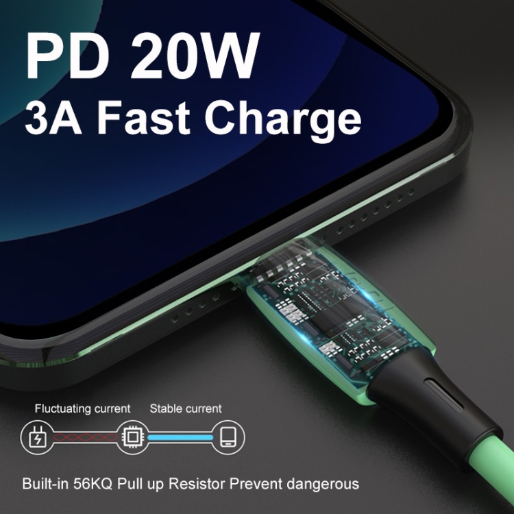 ENKAY Hat-Prince ENK-CB209 PD 20W 3A Type-C to 8 Pin Silicone Data Sync Fast Charging Cable, Cable Length: 1.2m