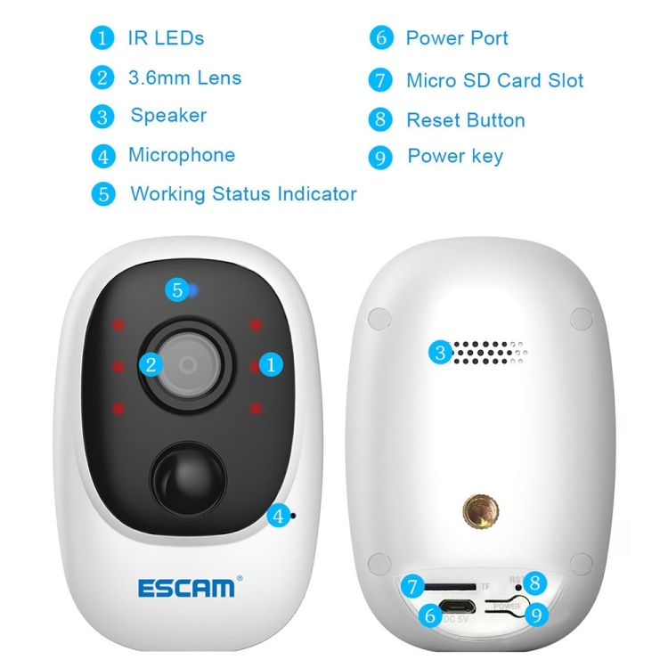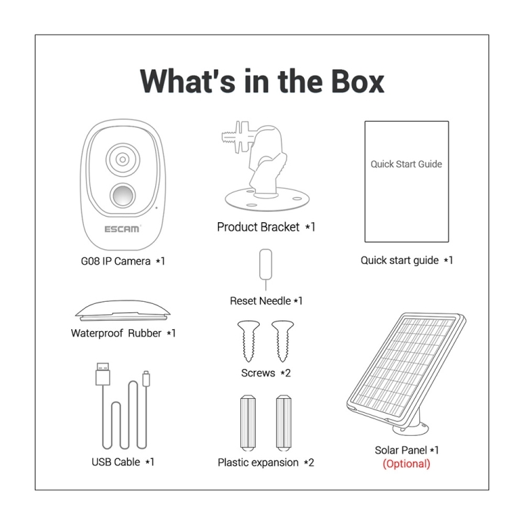 ESCAM G08 HD 1080P IP65 Waterproof PIR IP Camera with Solar Panel, Support TF Card / Night Vision / Two-way Audio