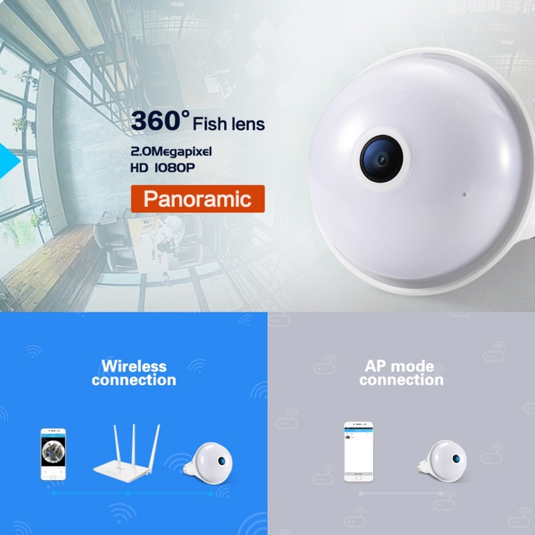 1. 2MP HD 1080P 360 degree panoramic Bulb