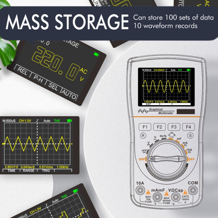 1. 2.5Msps high-speed sampling, 1MHz analog bandwidth (ACV oscilloscope only), 4000 code digital multimeter.
