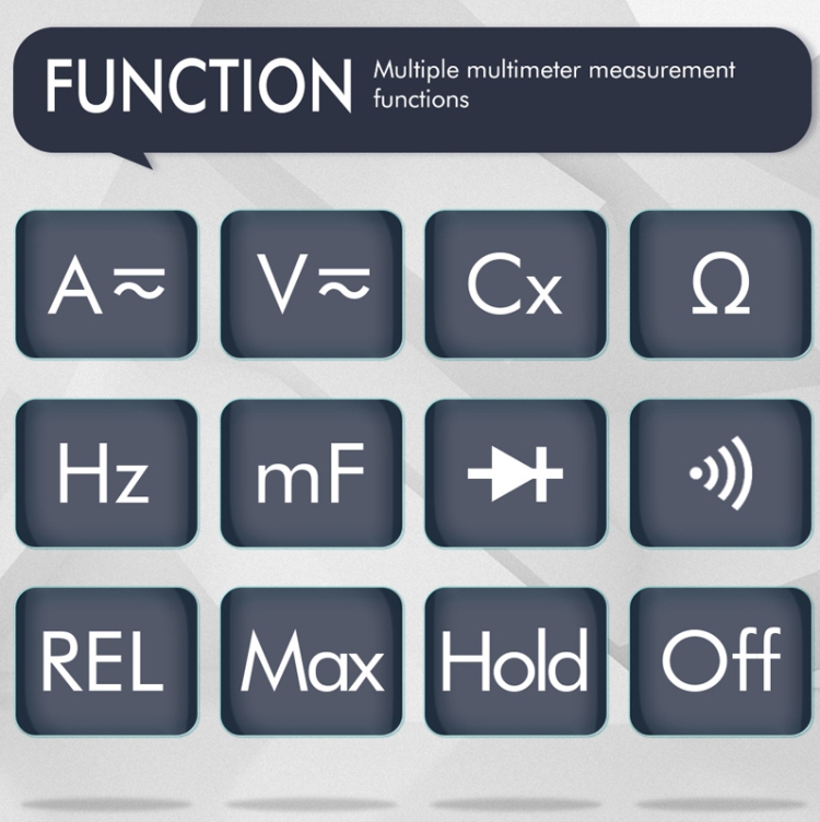 6. The functions of the multimeter include DC/AC voltage/current, resistance, capacitance, frequency, duty cycle, diode/continuity test.