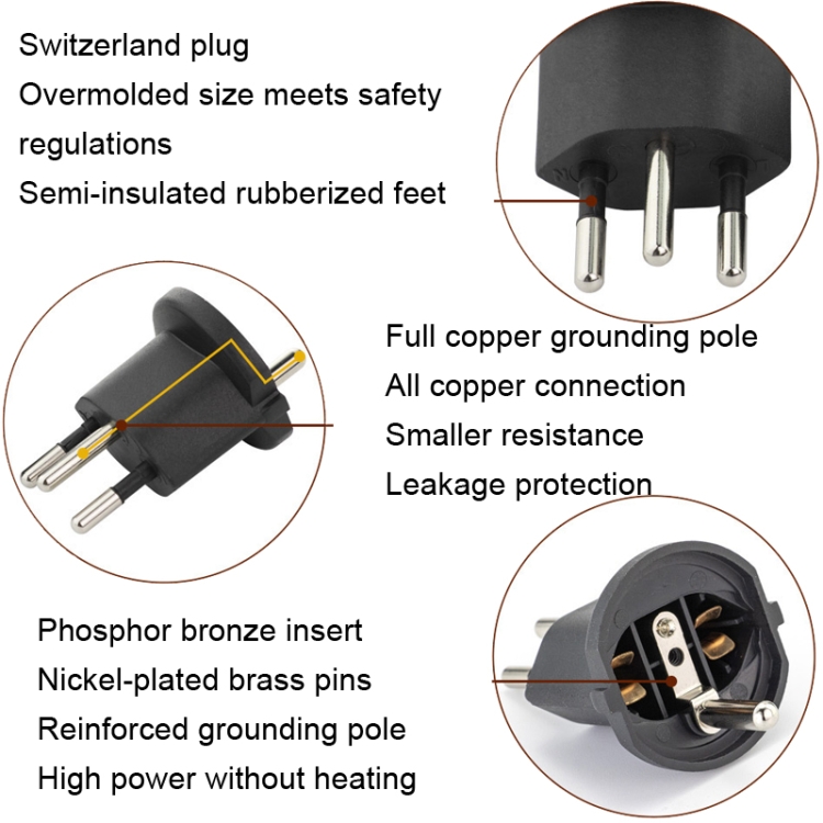 EU to Switzerland Convertible Plug With Ground Wire Travel Adaptor