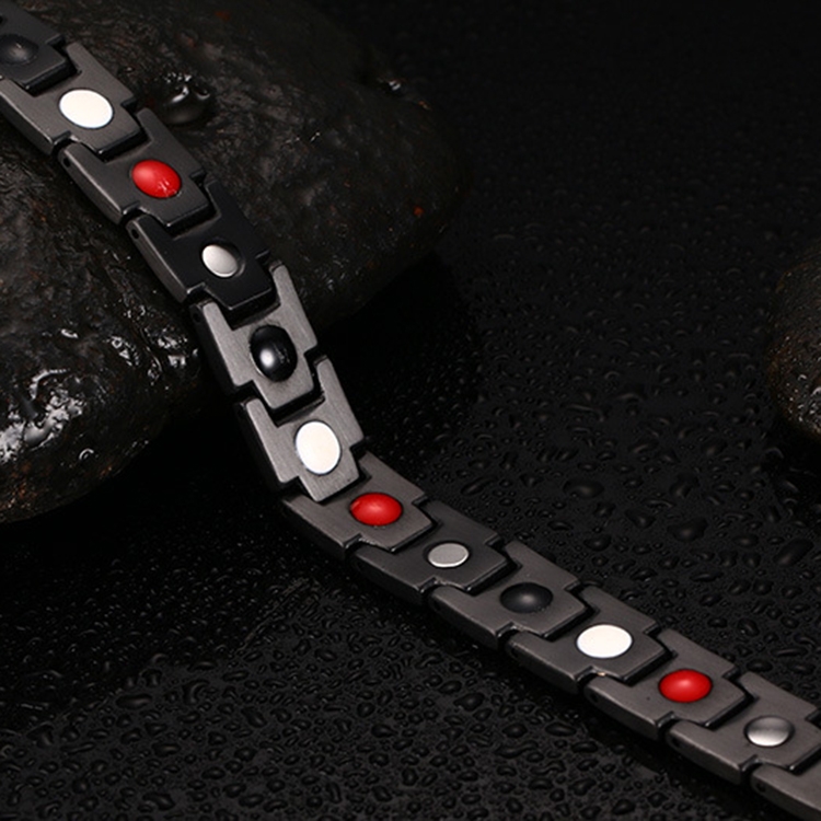 Europe and America Style Fashion Men Jewelry Stainless Steel + Gold-mounted Plating Magnetic Health Bracelet, Size: 12mm*22cm (Black+Gold)