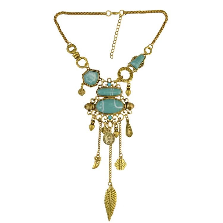 Exaggerated Openwork Pattern With Turquoise Alloy Stones Necklace