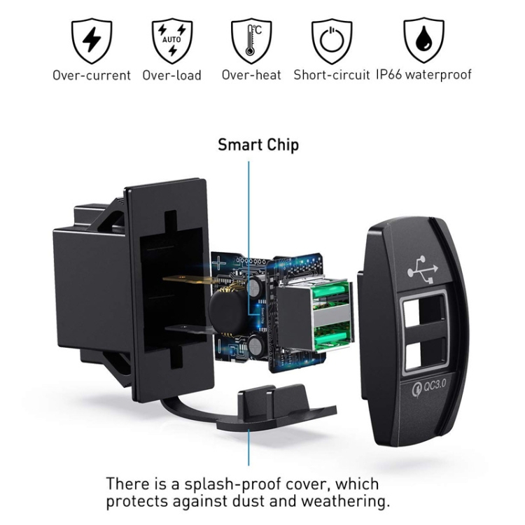 2. Dual USB charging ports, output current up to 3A, fast charging
