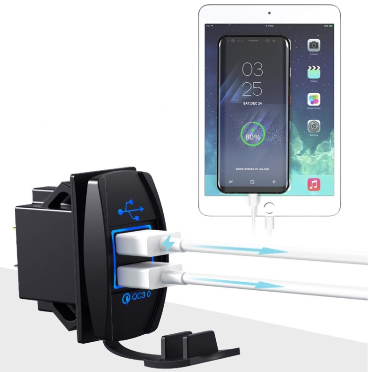 F3 Ship Type Car Dual USB Charger QC3.0 Fast Charge Switch Socket Modified 12V Car Charger