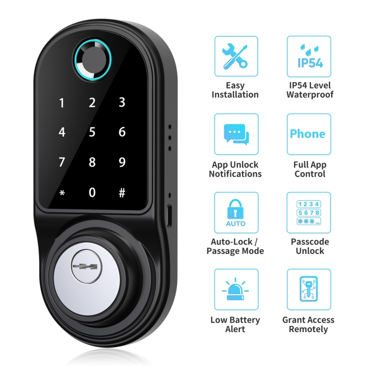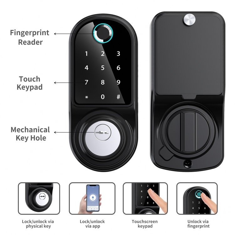 1. There are four locking methods: fingerprint unlocking, password unlocking, Tuya Bluetooth APP unlocking, mechanical key unlocking