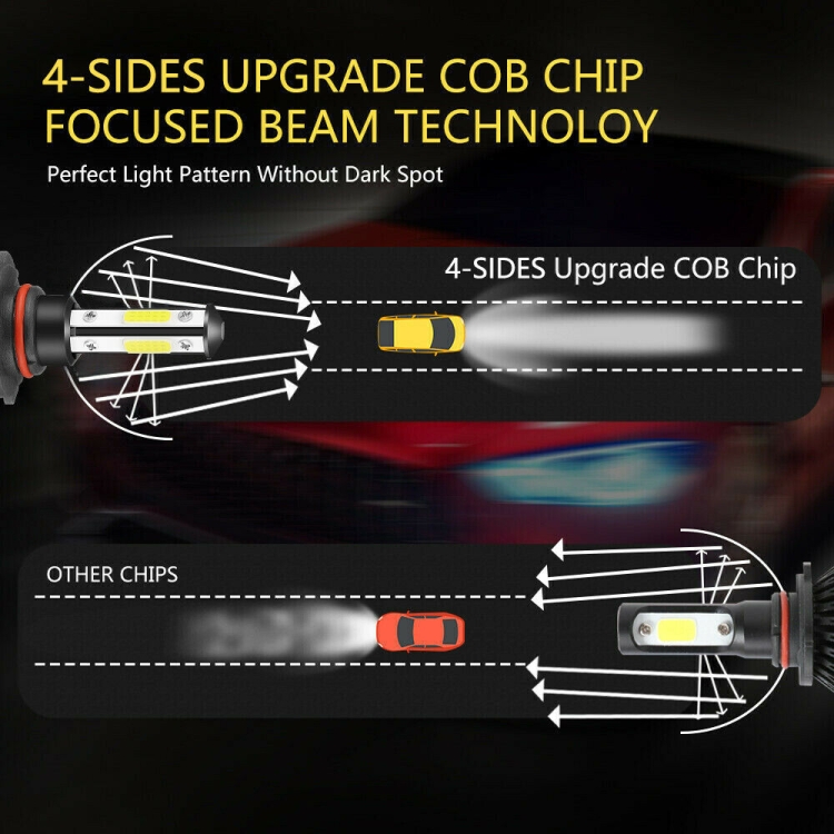 F8 9005 2 PCS 22W 3000LM 6000K Four Side DOB LED Headlight Fog Light Bulbs High Beam Conversion Kit DC 9-32V