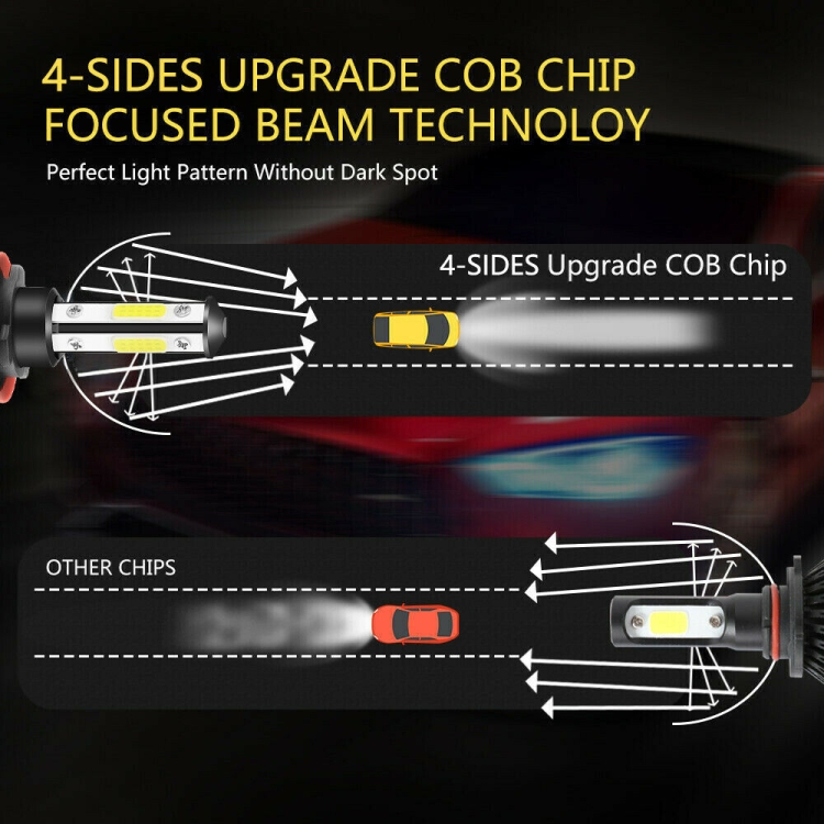 F8 H11 2 PCS 22W 3000LM 6000K Four Side DOB LED Headlight Fog Light Bulbs High Beam Conversion Kit DC 9-32V