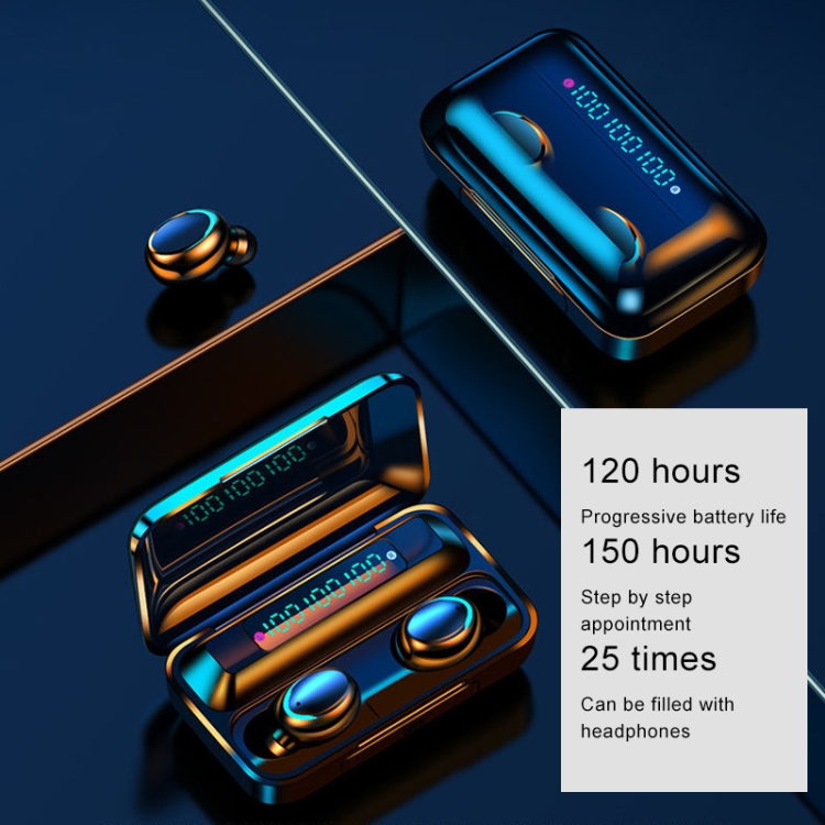 F9-5C Three-screen Digital Display Noise Reduction Bluetooth Earphone with Hand Strap, F9-5C Three Digital Display Black, F9-5C Three Digital Display White