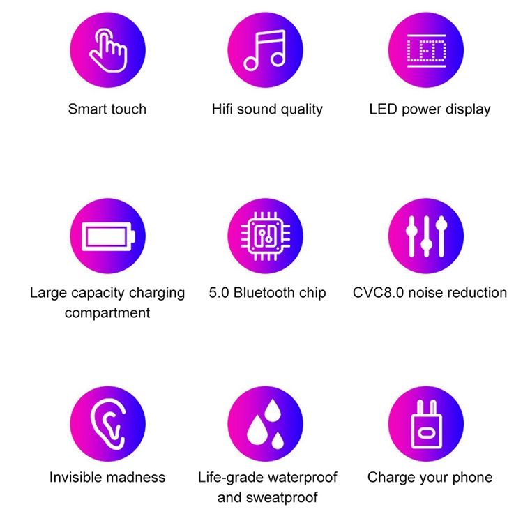 5. Large battery capacity charging case, provides long working time.