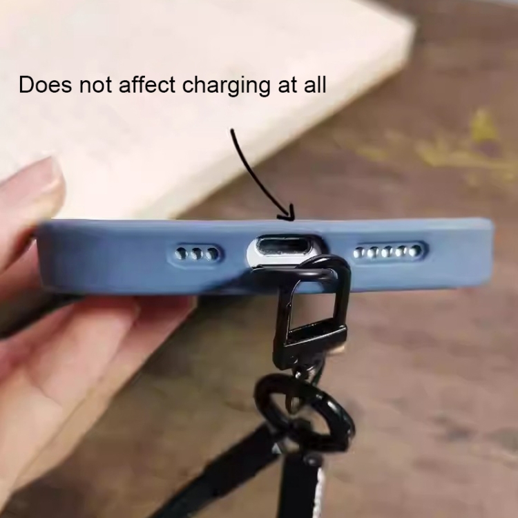 2. The mobile phone tether piece can be easily installed without tools. Just place the patch on the bottom of the phone case, pass the strap through the charging port of the phone case, and insert the phone into the protective case.