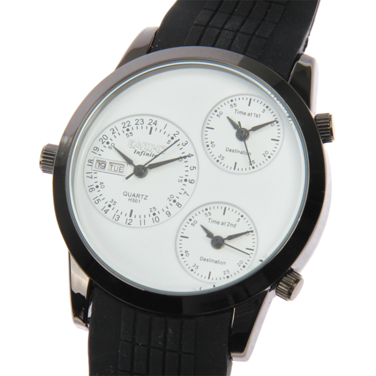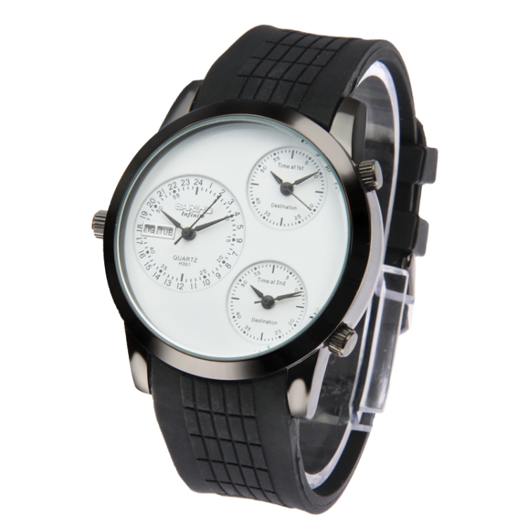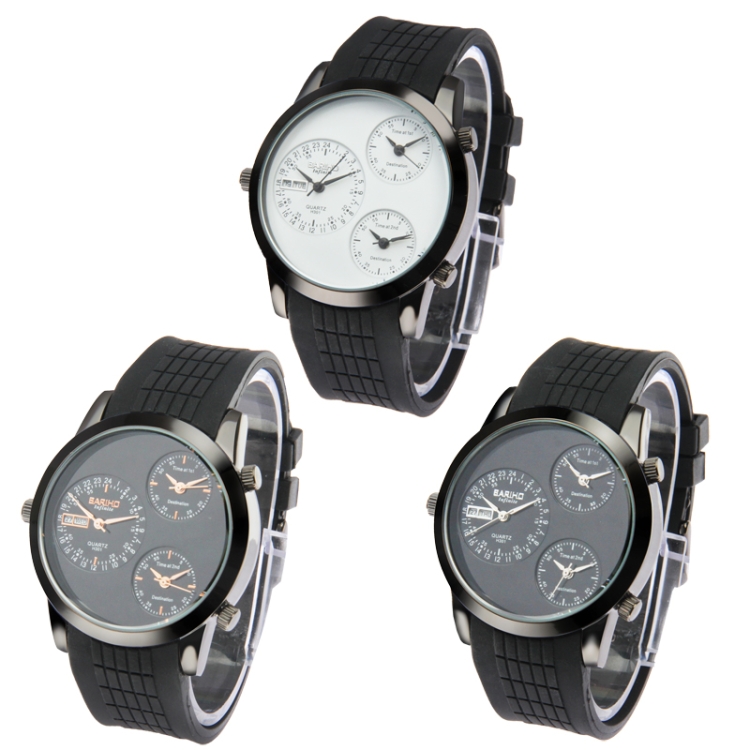 Fashion 3 Dial Quartz Wrist Calendar Watch with Silicone Strap