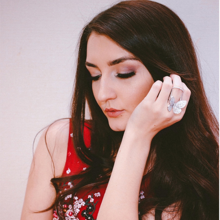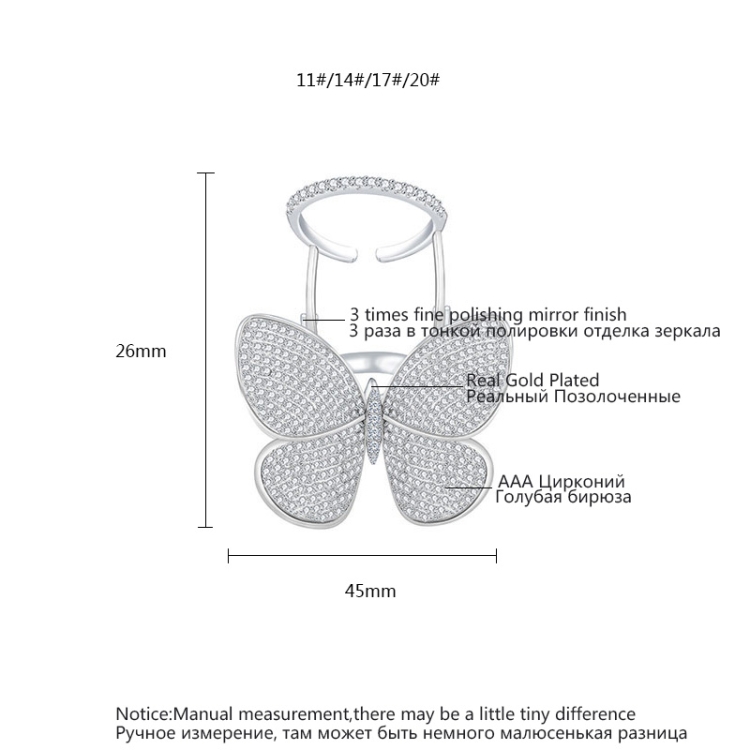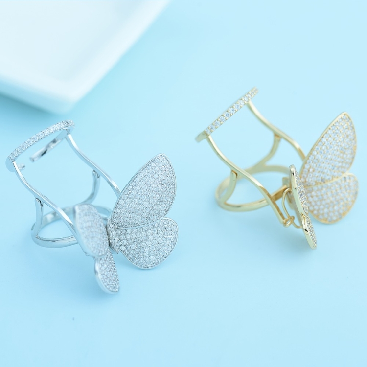 Fashion Adjustable Butterfly Shape Ring with Diamond Women Jewelry
