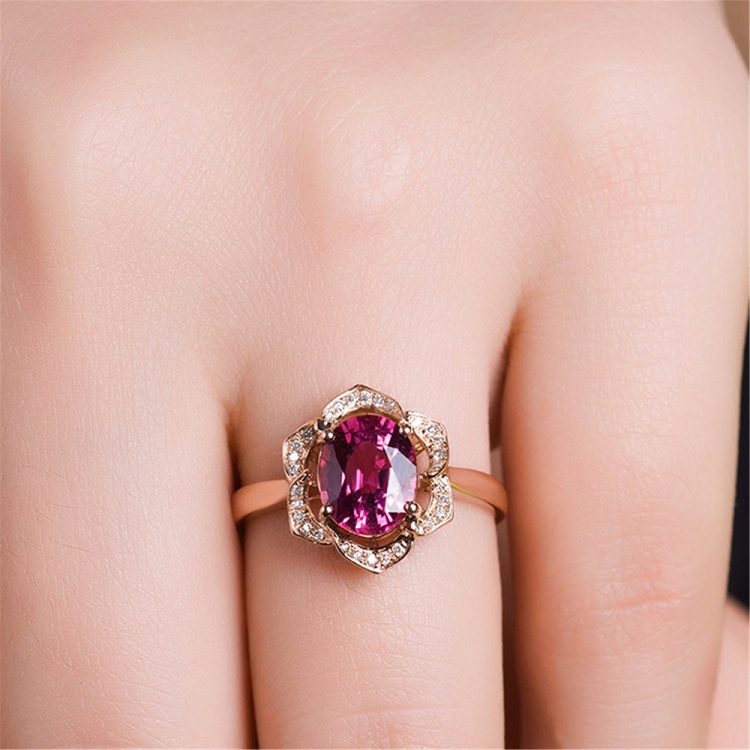 Fashion Red Tourmaline Rose Gold Flower Shape Women Ring