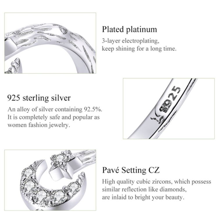Be the first to review “Fashion Retro Open Ring Sterling Silver S925 Star and Moon Platinum Plated Zircon Ring”