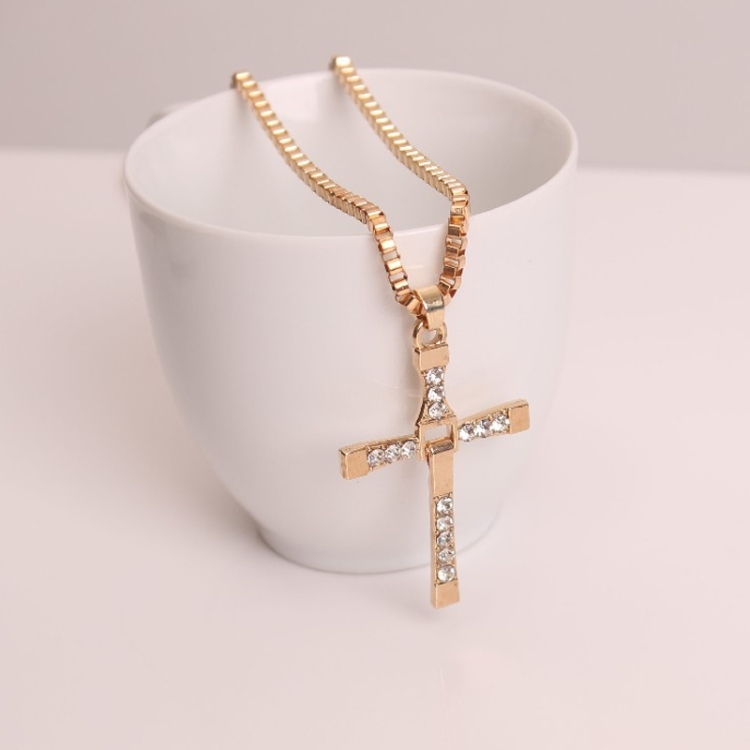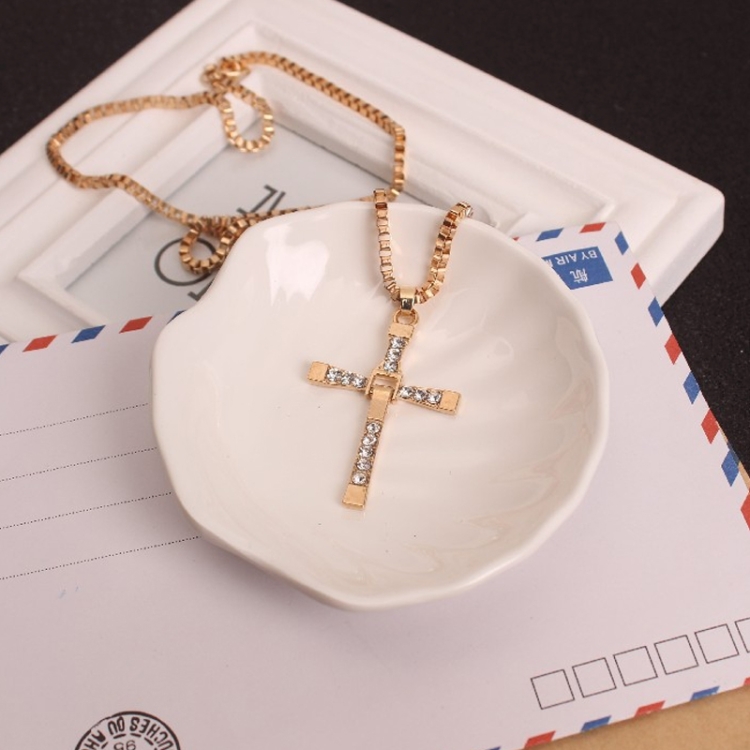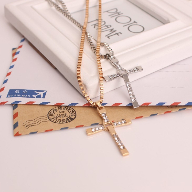 Fashion Rhinestone Cross Pendant Encrypted Box Necklace