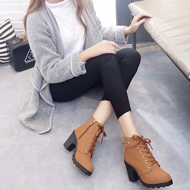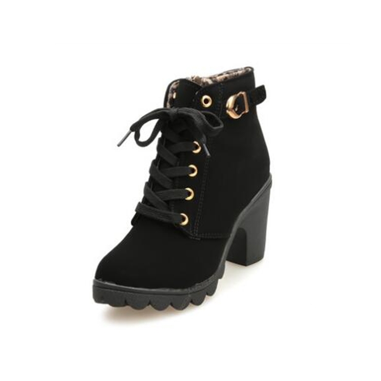 Fashion Square High Heels Solid Color Sneakers Women Snow Boots