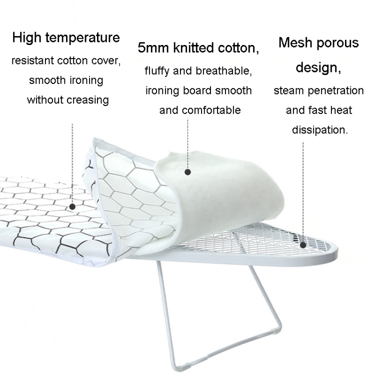 4. Heat-resistant cotton cloth cover, smooth ironing without pleating, 5 mm knitted cotton, fluffy and breathable, flat ironing board, mesh porous design, steam penetration and fast heat dissipation