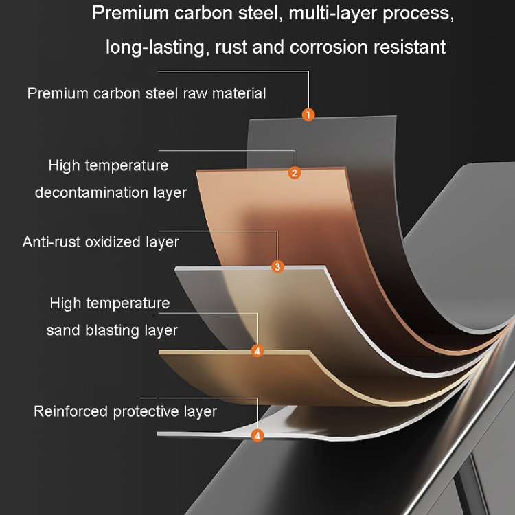 2. Thickened carbon steel material, multi-layer process, anti-rust and anti-corrosion, fire and anti-scratch, not afraid of fire, wear-resistant and anti-scratch, long-lasting and durable, multi-specification can be selected