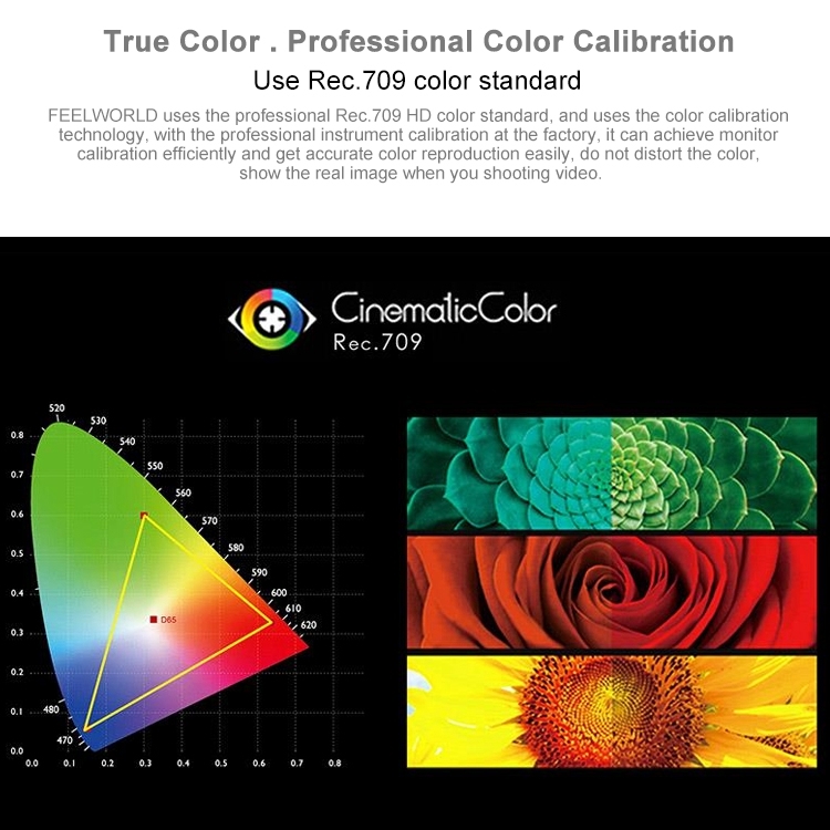 2. Adopt the Rec.709 high-definition color standard trusted by various professional fields, use professional color correction technology, apply algorithms, and cooperate with professional instrument factory calibration to accurately restore the colors in the film, without distortion and color cast, display real images, and let your shooting Even more powerful
