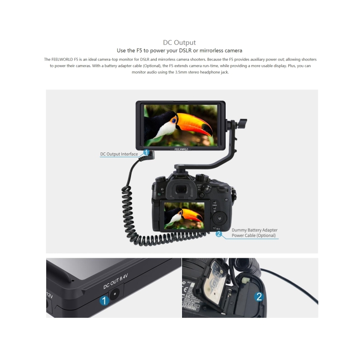 5. Provide auxiliary power out; allowing shooters to power their cameras
