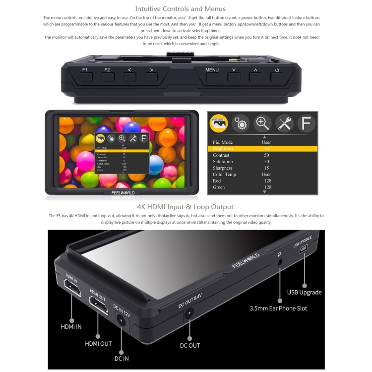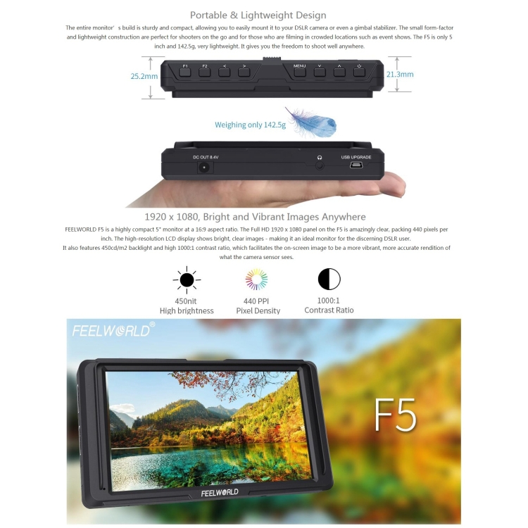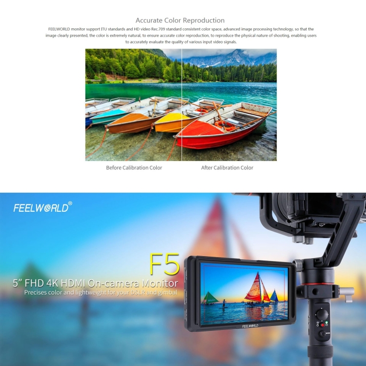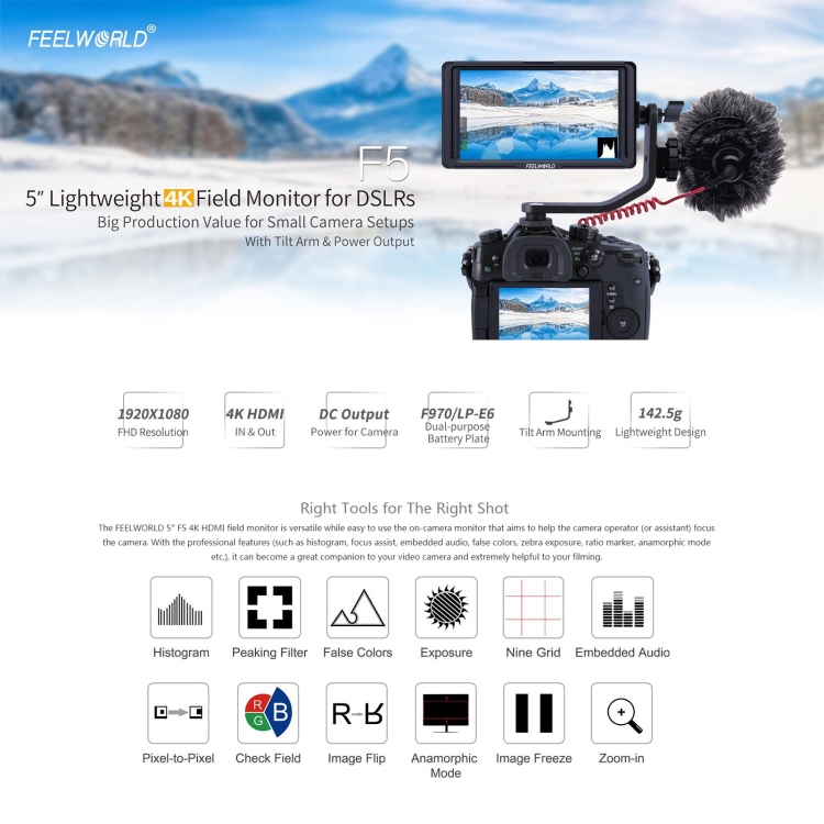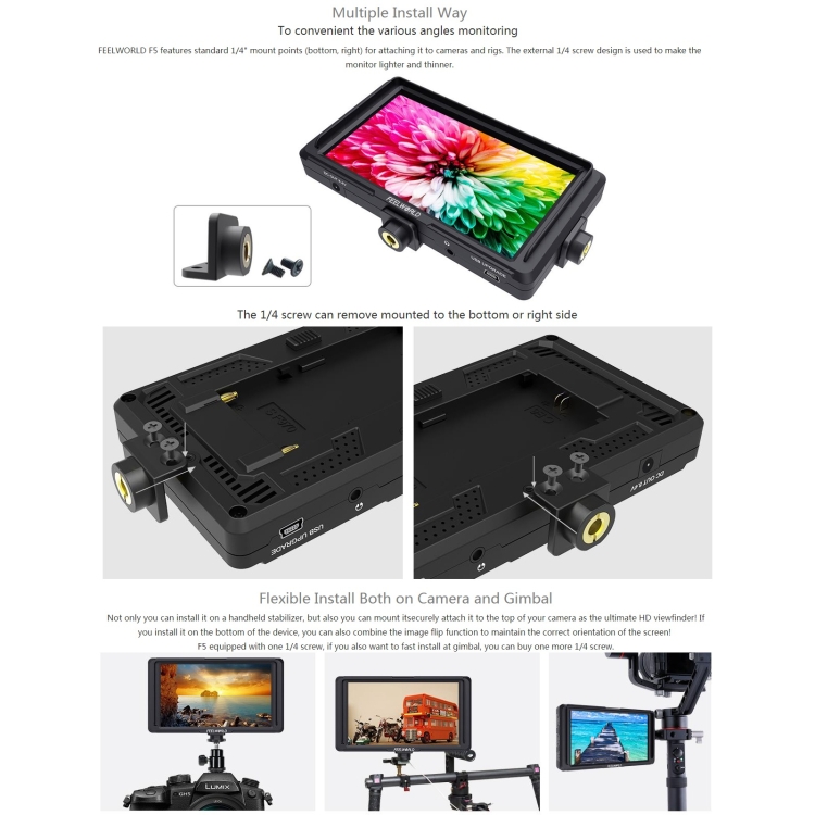 FEELWORLD F6S Full HD 1920×1080 5.0 inch IPS Screen DSLR Camera Field Monitor with Tilt Arm, Support 4K HDTV Input / Output