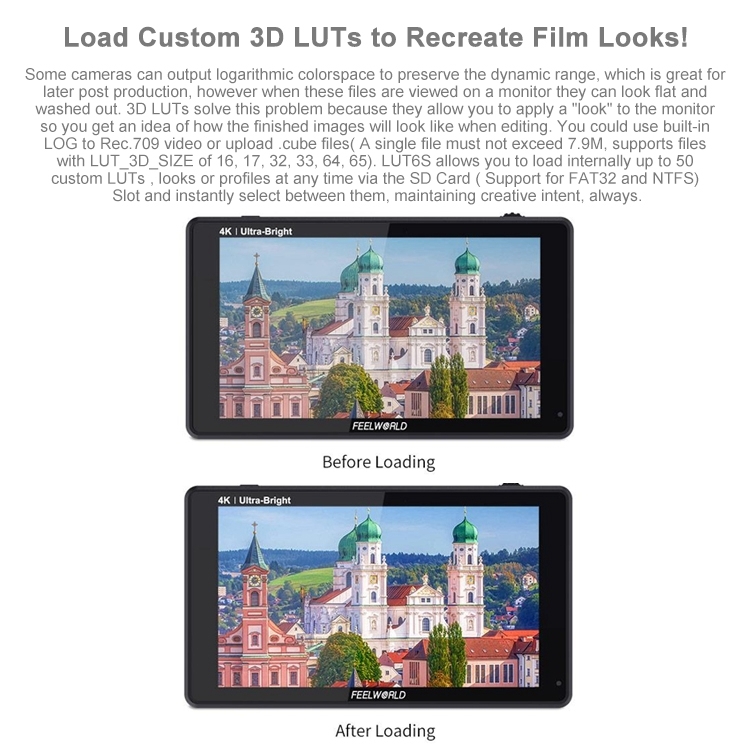 FEELWORLD LUT6S 1920×1080 2600 nits 6 inch IPS Screen HDMI 4K Touch Screen SDI HDI Camera Field Monitor