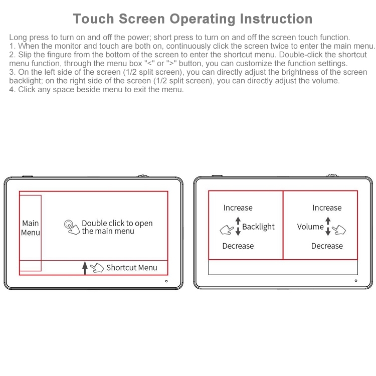 1. With a complete set of tools with simple operation and professional functions, all operations can be completed with one touch. Video assistance functions include focusing, composition and exposure tools (waveform, vector diagram, RGB histogram, brightness histogram, audio column, peak focus, zoom, zebra pattern, pseudo color, safety frame, etc.) and a flexible 3D LUT loading Tools (either using the built-in LUT or uploading custom .cube files), HDR monitoring and anamorphic widescreen recovery functions