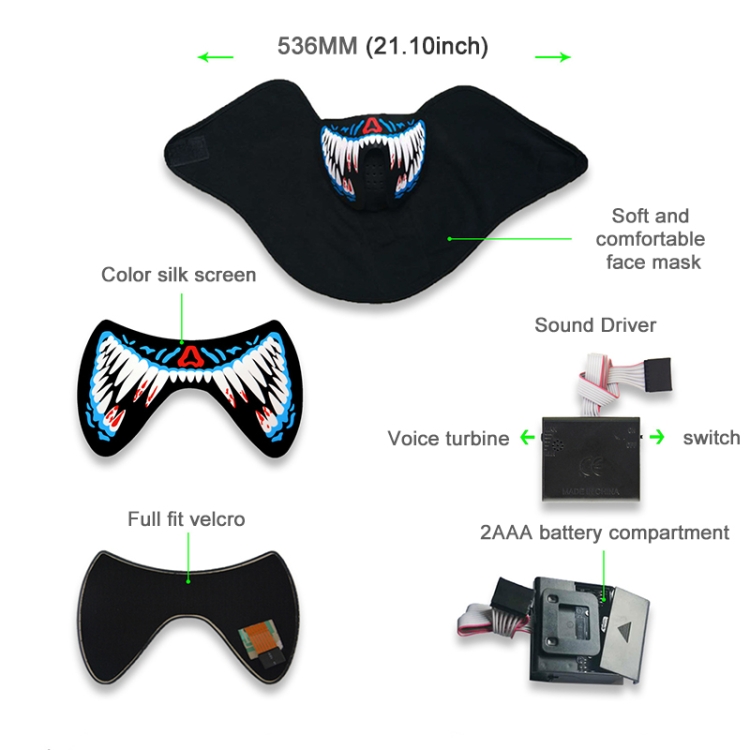 FG-MA-02 Halloween Mask Voice Control LED Cold Light Terror Cosplay Mask