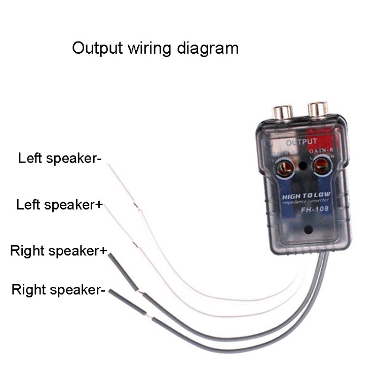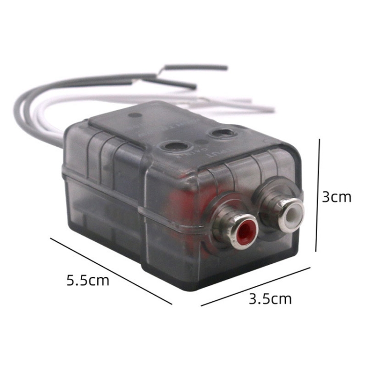 2. Use: for no low-frequency (RCA) output host (eg: cassette player / card machine / CD / VCD / DVD, etc.) will be the speaker output high-frequency conversion to low-frequency (RCA) output, used as a power amplifier or subwoofer signal input to connect the car