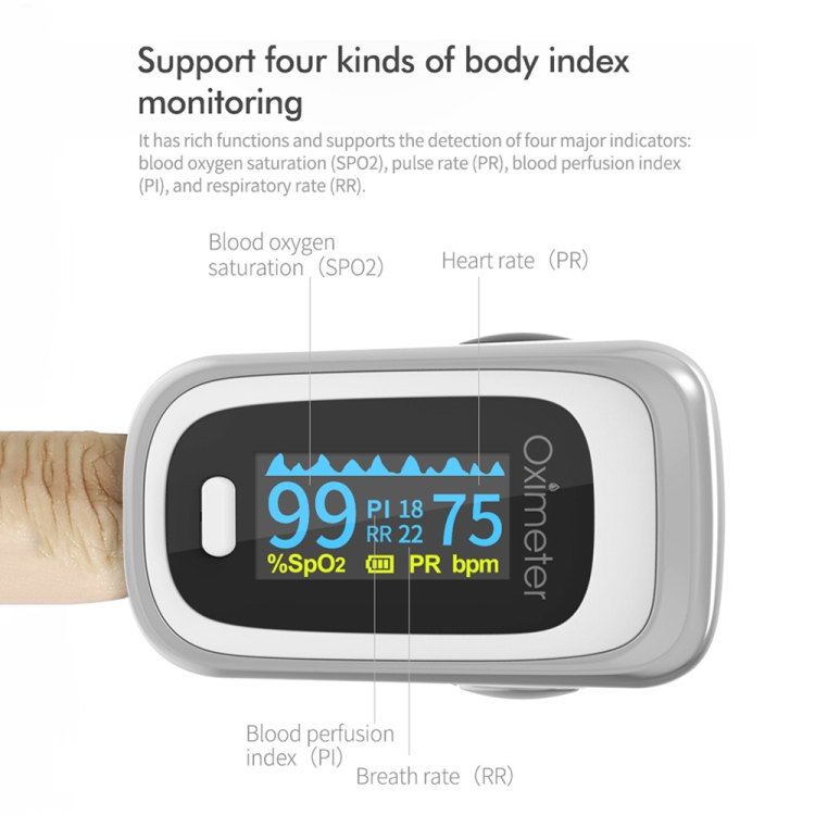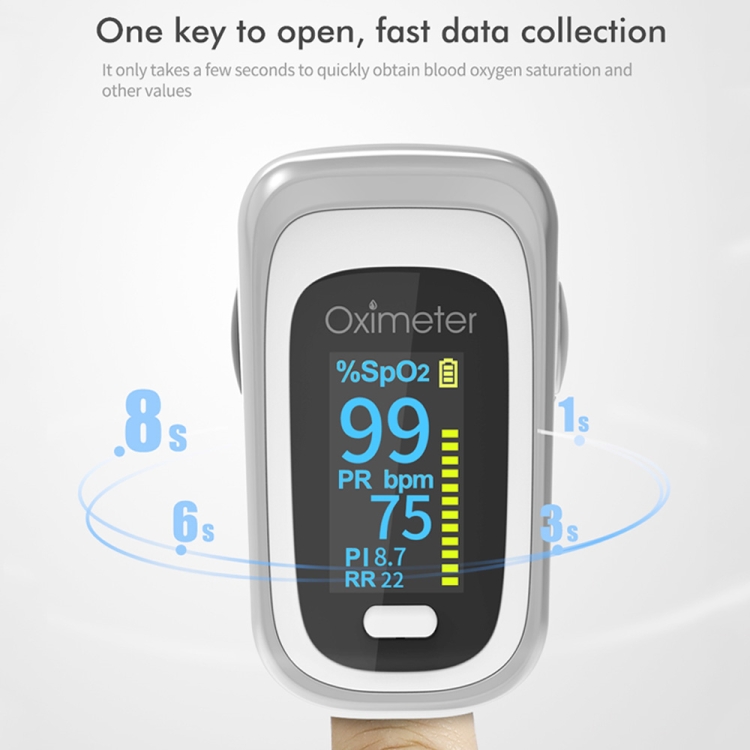 12. Automatic shutdown: when no finger is inserted, it will automatically shut down in 8 seconds