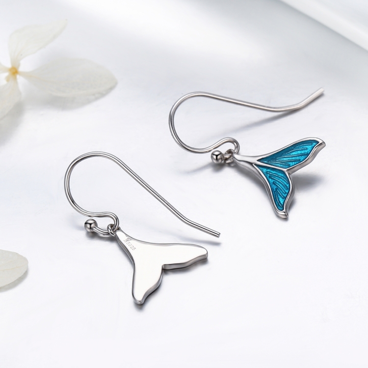 Fish Tail Sterling Silver Earrings Platinum Plated Ladies Accessories