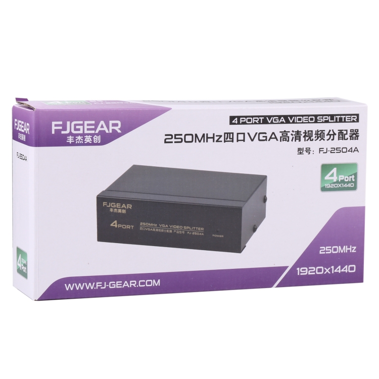 FJ-2504A 4 Port VGA Video Splitter High Resolution 1920 x 1440 Support 250MHz Video Bandwidth