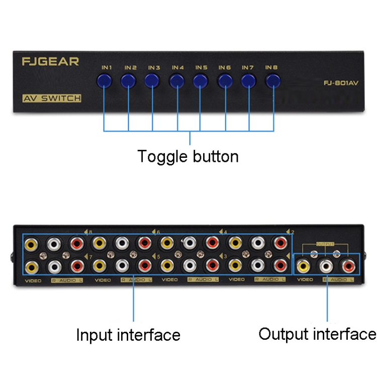 FJGEAR FJ-801AV Audio Video Switcher 8 In 1 Out CVBS Switcher