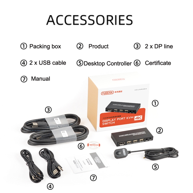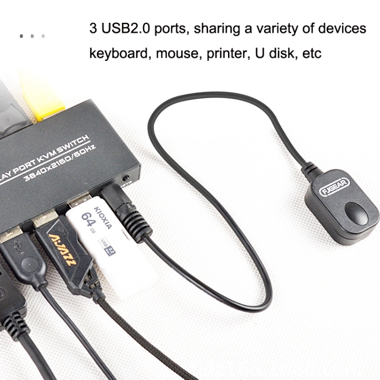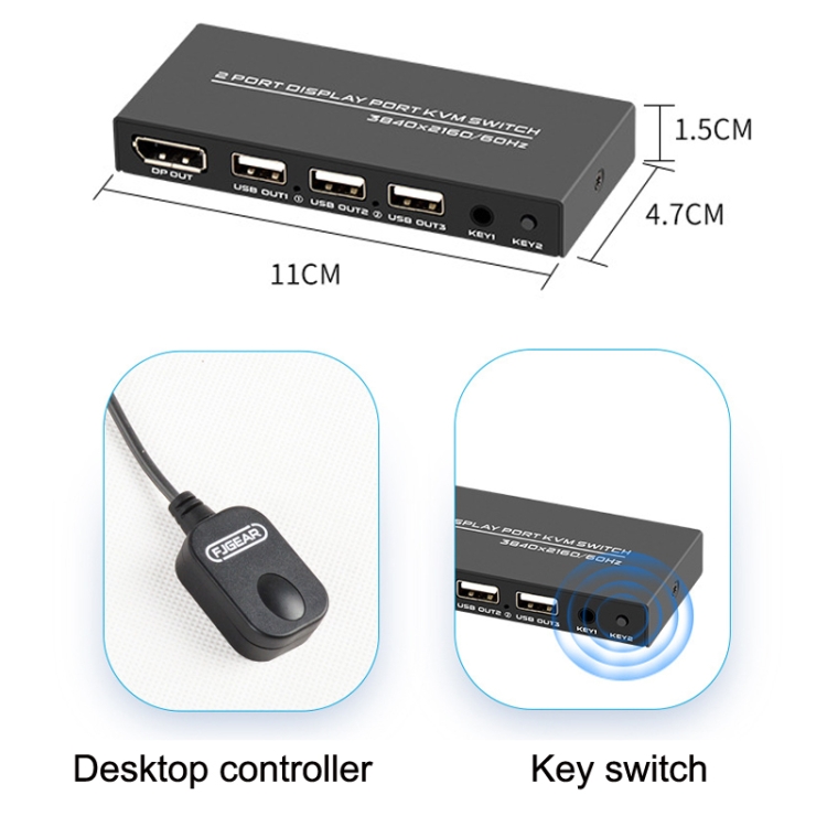 FJGEAR FJ-DK201 60HZ 2 Ports DP + USB To KVM Switcher With Desktop Controller