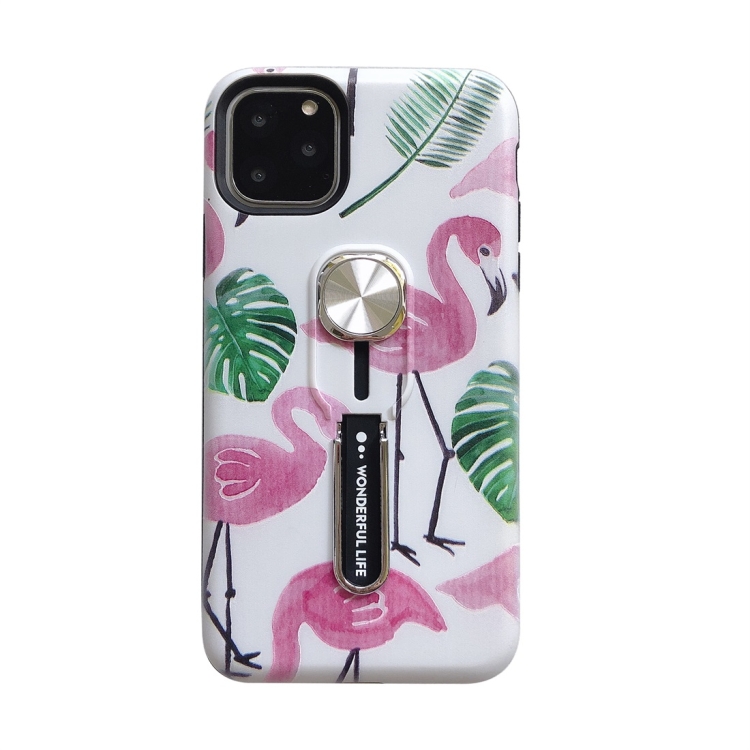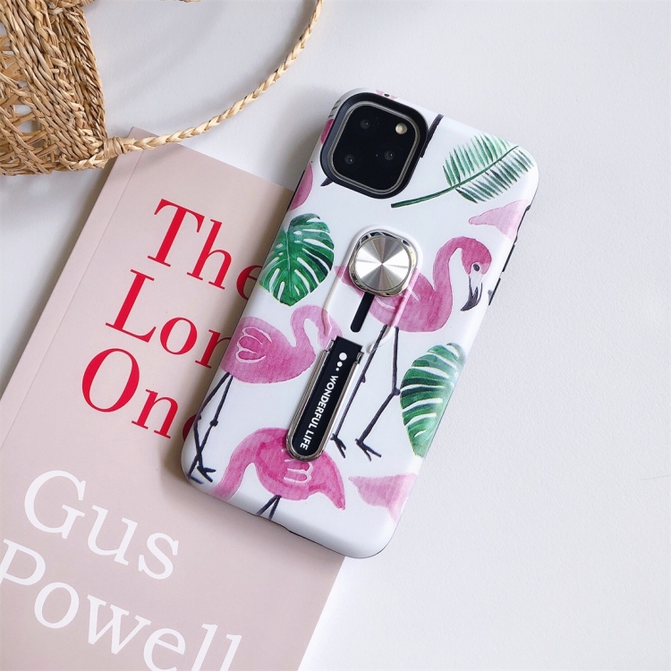 Flamingo Painting Shockproof Multi-functional Invisible Ring Holder Protective Case with Vehicle Magnetic Sheet