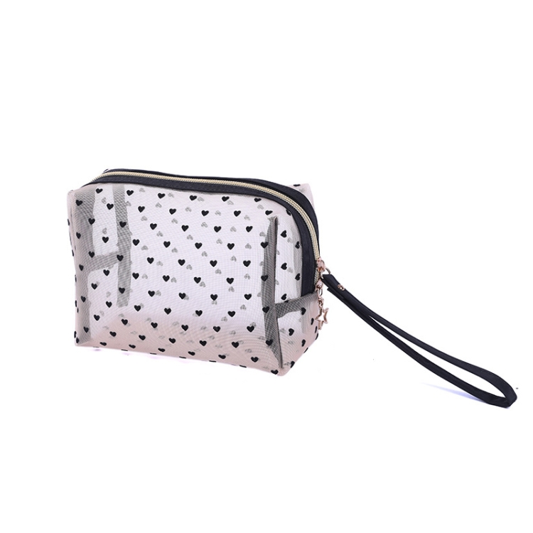 Flocking Love Mesh Portable Cosmetic Bag, Style:
