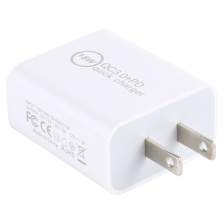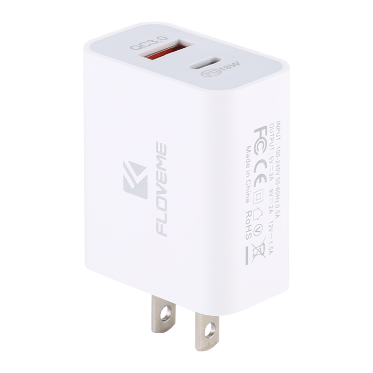 FLOVEME 18W PD + QC 3.0 Dual USB Travel Fast Charger Power Adapter, US Plug