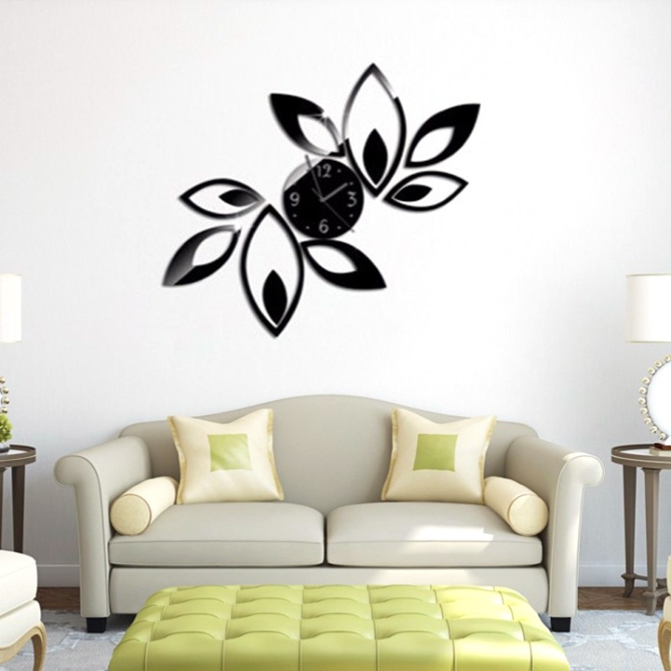 Flower Art Modern Design DIY Removable 3D Crystal Mirror Wall Clock Wall Sticker Living Room Bedroom Decor