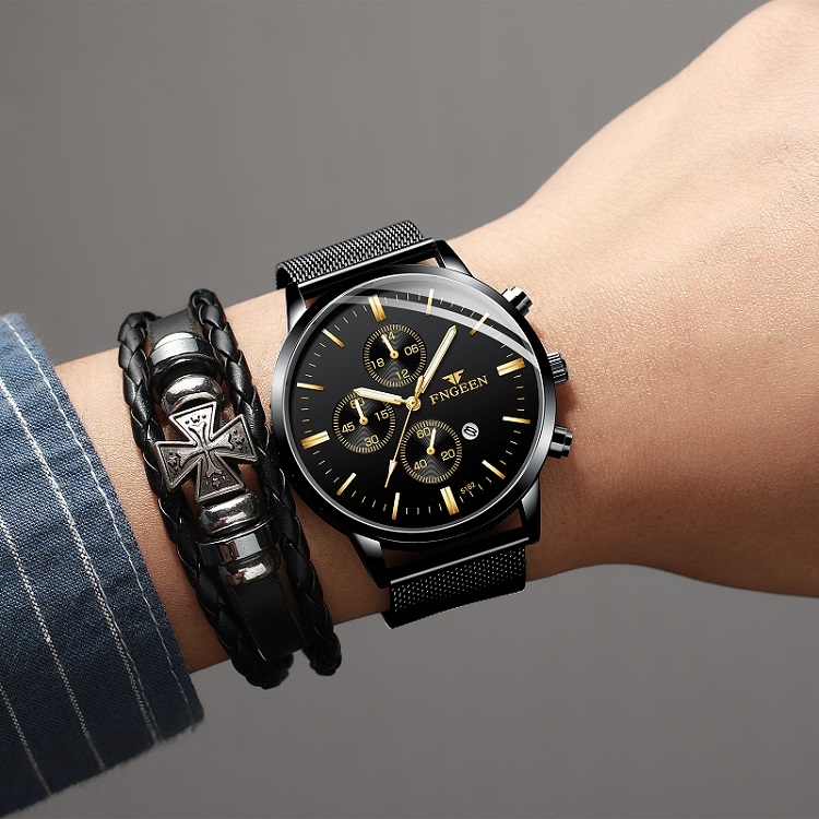 FNGEEN W5128 Men Three Eyes Subdial Luminous Quartz Watch Student Simple Watch